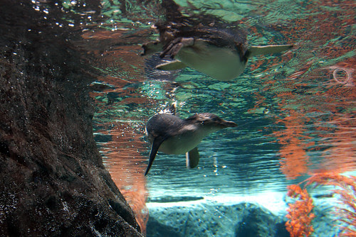 The Little Blue Penguin display is also home to rehabilitated birds who can no longer live in the wild. Yet, here they have the opportunity to live out their lives as normally as possible. Note the little guy carrying nest material. :)